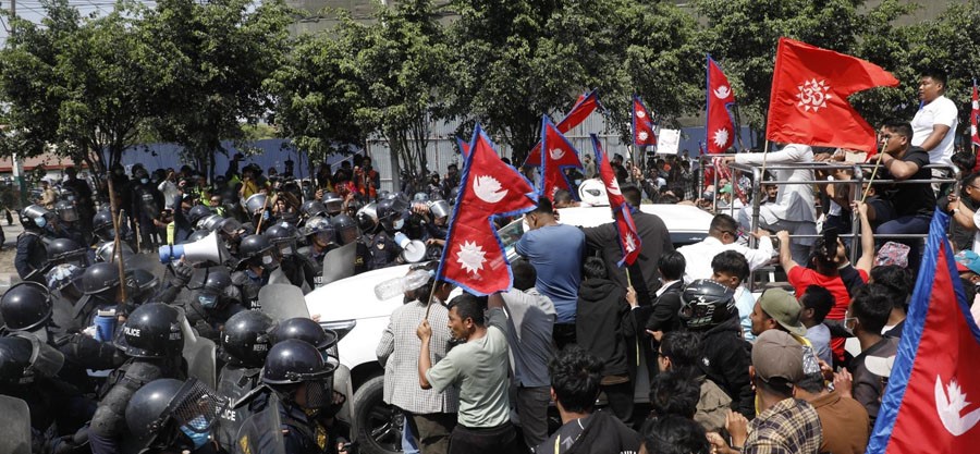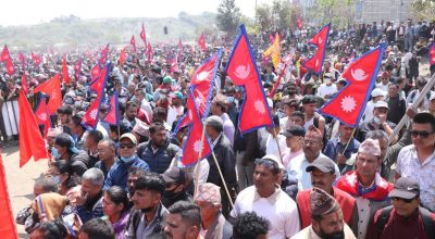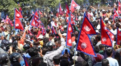 काठमाडौं १५ चैत । काठमाडौंको तीनकुनेमा जारी राजावादीहरूको कार्यक्रम बिथोलिएको छ । अश्रुग्यास प्रहार गरेपछि सहभागीहरुको भागाभाग भएको छ । सभाका लागि विभिन्न ठाउँबाट मानिसहरु प्रदर्शनमा आइरहेका थिए । प्रहरीले बानेश्वरतर्फ जाने सडक बन्द गराएको थियो । त्यहाँको प्रहरी घेरा तोड्न खोजेपछि प्रहरीले बल प्रयोग ...