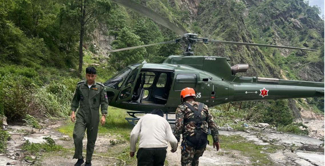 काठमाडौ २४ असार । भोटेकोसीमा आएको बाढी प्रभावितलाई उद्धार गर्न गएको नेपाली सेनाको हेलिकप्टर चिनियाँ भूमिमा रोकिएको छ। सेनाको सानो हेलिकप्टर उद्धारका लागि अनुमति नलिई प्रवेश गरेकाले चिनियाँ सुरक्षा फौजले फोर्स ल्यान्डिङ गराएको स्रोतको दाबी छ। यता नेपाली सेनाका प्रवक्ता सहायक रथी राजाराम बस्नेतले भने ...