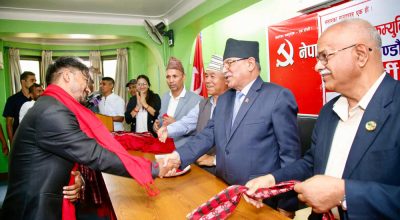 काठमाडौ २१ असार । सुदूरपश्चिम प्रदेश सरकारका मुख्यमन्त्री कमलबहादुर शाहले नेपाली कांग्रेसका सभापति शेरबहादुर देउवासँग भेटवार्ता गरेका छन् । उन्मुक्ति पार्टीले समर्थन फिर्ता गरेको एक दिनपछि शनिवार बुढानीलकण्ठस्थित निवास पुगेर उनले सभापति देउवासँग भेट गरेका हुन् । मुख्यमन्त्री शाहका प्रेस संयोजक डम्मर बमले पछिल्लो राजनीतिक ...