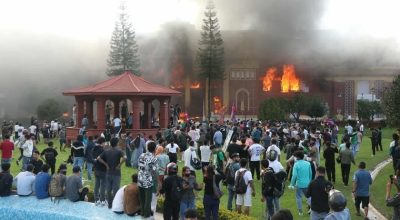काठमाडौ २४ भदौ । प्रदर्शनकारीले सिंहदरबारको मुख्य भवनमा समेत आगजनी गरेका छन् । अहिले सिंहदरबारको कोठाकोठामा आगो दन्किरहेको छ । सिंहदरबार राणाकालीन ऐतिहासिक सम्पदा हो । यो मुख्य भवनमा प्रधानमन्त्री तथा मन्त्रिपरिषदको कार्यालय लगायत छन् । सिंहदरबारका चारवटै गेटमा सुरक्षाकर्मी थिएनन् । त्यसैले प्रदर्शनकारीहरु सजिलै ...