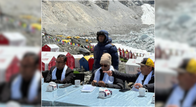 काठमाडौ ४ जेठ । सशस्त्र प्रहरी सहायक निरीक्षक दन्तबहादुर छत्यालले विश्वको सर्बोच्च शिखर सगरमाथाको सफल आरोहण गर्नुभएको छ । उहाँले आज बिहान ९ बजेर २० मिनेटमा आठ हजार आठ सय ४८ मिटर अग्लो सगरमाथाको चुचुरोमा ‘सगरमाथा संवाद’ र सशस्त्र प्रहरी बल नेपालको झन्डा फहराउन सफल ...