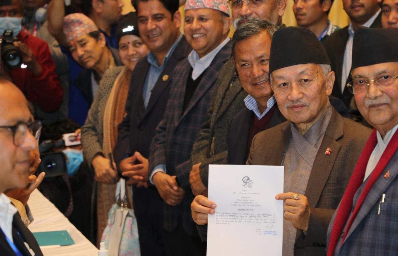 काठमाडौँ, १३ फागुन । नेकपा (एमाले)का तर्फबाट यही फागुन २५ गते हुने राष्ट्रपति पदको निर्वाचनका लागि उपाध्यक्ष सुवासचन्द्र नेम्वाङले उम्मेदवारी दिएका छन् । उनको उम्मेदवारी दर्ता गर्न एमाले अध्यक्ष केपी शर्मा ओलीलगायत नेताहरू नयाँ बानेश्वरस्थित संघीय संसद् भवन पुगेका थिए । उनको प्रस्तावकमा अध्यक्ष ओली ...