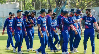 काठमाडौं, ५ बैशाख । नेपालले ओमानमा जारी एसीसी प्रिमियर कपमा आफ्नो समूह चरणको अन्तिम खेलमा आज साउदी अरेबियासँग खेल्दैछ । खेल मध्यहान्न ११ स् ४५ मा अल अमरेत क्रिकेट ग्राउन्ड(२ मा सुरुहुनेछ । नेपाल समूह ए बाट ३ खेलमा ६ अंकका साथ विजेता बन्दै सेमिफाइनलमा ...