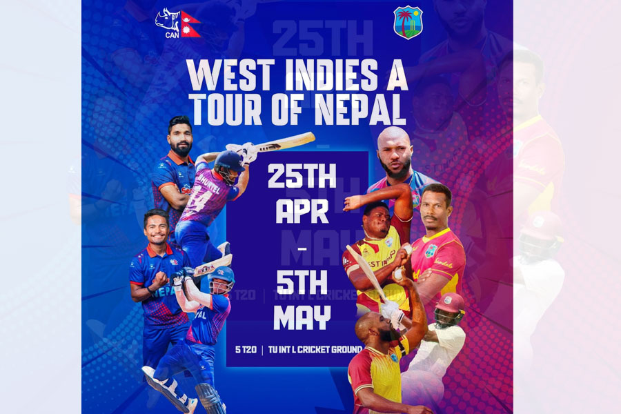 काठमाडौं, २७ चैत्र । टेस्ट टोली वेस्टइन्डिजको ए र नेपालबीच हुने पाँच टी-२० खेलको खेल तालिका सार्वजनिक भएकोछ । वेस्टइन्डिज क्रिकेट बोर्डले पाँच टी– २० खेलको तालिका सार्वजनिक गरेको हो । नेपाल र वेस्टइन्डिजबीचको पहिलो खेल २७ अप्रिलमा हुनेछ । दोस्रो २८ अप्रिल, तेस्रो १ ...