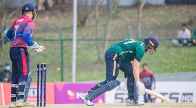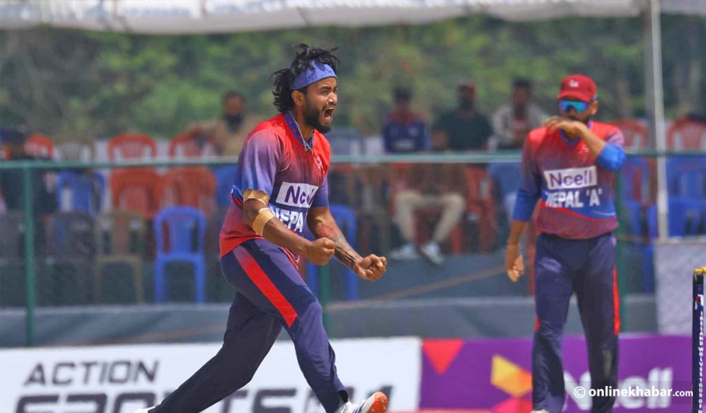 काठमाडौं २१ चैत । नेपालका तीव्र गतिका बलर कमलसिंह ऐरीको ह्याट्रिकसँगै आयरल्यान्ड ए ले पहिलो एक दिवसीय अभ्यास खेलमा नेपाल ए लाई १५८ रनको सामान्य लक्ष्य दिएको छ । त्रिवि क्रिकेट मैदानमा टस जितेर पहिला ब्याटिङ रोजेको आयरल्यान्ड ए ३८।३ ओभरमा १५७ रनमा अल आउट ...