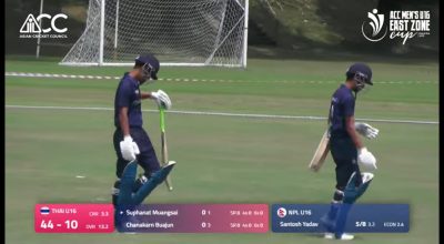 काठमाडौ असार १५ । नेपाल एसीसी यू–१६ इस्ट जोन कप क्रिकेटको सेमिफाइनलमा पुगेको छ। समूहका दुवै खेल जितेर नेपाल विजेताका रुपमा अन्तिम चारमा पुगेको हो। नेपालले दोस्रो तथा अन्तिम खेलमा शुक्रबार मलेसियालाई ८४ रनले हरायो। पहिला ब्याटिङ गरेको नेपालले ३३(४ ओभरमा सबै विकेट गुमाएर एक ...