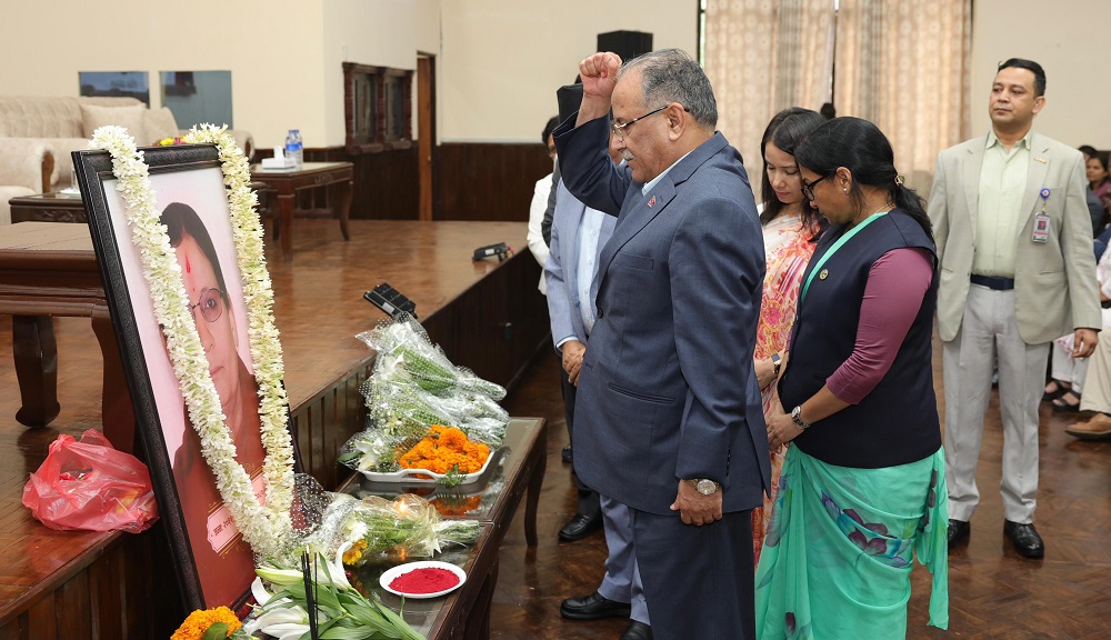 काठमाडौं २७ असार । प्रधानमन्त्री एवम् नेकपा माओवादी केन्द्रका अध्यक्ष पुष्पकमल दाहाल ‘प्रचण्ड’ की जीवनसँगिनी सीता दाहालको प्रथम स्मृति दिवसमा ‘श्रद्धाञ्जली’ कार्यक्रम आयोजना गरिएको छ । प्रधानमन्त्री निवास बालुवाटारमा बिहीबार आयोजित कार्यक्रममा प्रधानन्त्री प्रचण्डसहित उहाँका परिवारका सदस्यहरूले सीता दाहालको तस्बीरमा पुष्पगुच्छा एवम् माल्यार्पण गर्नुभयो । ...