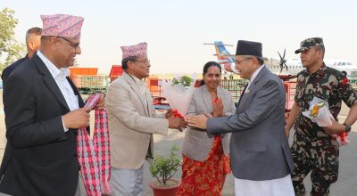 काठमाडौं १४ बैशाख । प्रधानमन्त्री पुष्पकमल दाहाल ‘प्रचण्ड’ केहीबेर अघि मोरङ आइपुग्नुभएको छ । उहाँ नेपाली सेनाको हेलिकप्टरबाट यहाँ आइपुग्नुभएको हो । मोरङको गोठगाउँस्थित पूर्वाञ्चल विश्वविद्यालयको १२औँ दीक्षान्त समारोहका लागि प्रधानमन्त्री दाहाल यहाँ आइपुग्नुभएको हो । उहाँलाई मोरङका प्रमुख जिल्ला अधिकारी, सुरक्षा निकायका प्रमुखहरु, विश्वविद्यालयका ...