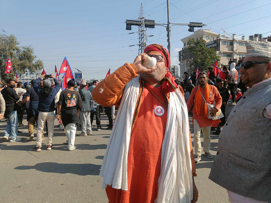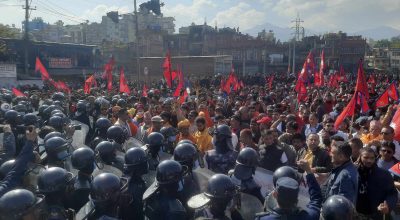 काठमाडौं, ७ मंसिर । मेडिकल व्यवसायी दुर्गा प्रसाईंले बिहीबार काठमाडौंको बल्खुमा आयोजना गरेको सभाका निम्ति प्रदर्शनकारी भेला भइरहेका छन् । प्रदर्शनकारी र्यालीसहित विभिन्न स्थानबाट बल्खुमा पुगेका हुन् । प्रदर्शनकारीले ‘गणतन्त्र मुर्दावाद’, ‘भ्रष्ट नेता चाहिँदैन’, ‘हाम्रो राजा हाम्रो देश प्राणभन्दा प्यारो छ’, ‘देश बेच्न पाइँदैन’ लगायत ...