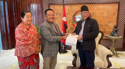 काठमाडौं, २१ कात्तिक । नेपाली कांग्रेसका सभापति शेरबहादुर देउवा नेतृत्वको टोलीले प्रधानमन्त्री पुष्पकमल दाहाल ‘प्रचण्ड’लाई मंगलबार बिहान ५० लाख रुपैयाँको चेक हस्तान्तरण गरेको छ । देउवा, कांग्रेस महामन्त्रीद्वय गगन थापा र विश्वप्रकाश शर्मा, प्रचार विभाग प्रमुख मीन विश्वकर्मा र केन्द्रीय सदस्य प्रा। डा. गोविन्दराज ...