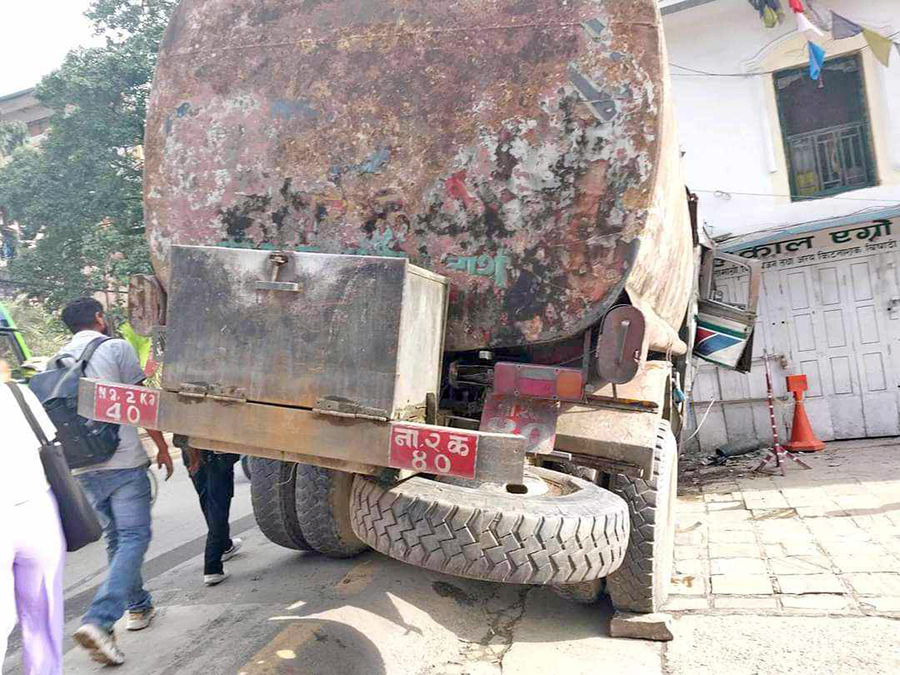 काठमाडौ साउन १५ । काठमाडौंको महांकाल मन्दिरमा पानी ट्यांकर ठोक्किंदा चालक गम्भीर घाइते भएका छन् ।त्रिपुरेश्वरबाट भोटाहिटीतर्फ जाँदै गरेको ना २ क ४० नम्बरको ट्यांकर आज बिहान करिब सवा दुई बजेतिर मन्दिरको भित्तामा ठोक्किएको हो ।दुर्घटनामा ट्यांकर चालक काठमाडौंको बसुन्धरा बस्ने ओखलढुंगाका ५९ वर्षीय चेतबहादुर ...