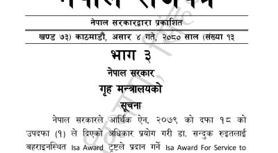 काठमाडौं ५ असार । सरकारले अखण्ड भारत सम्बन्धी नक्साको वास्तविकता बुझेर रिपोर्ट बुझाउन दिल्लीस्थित नेपाली दूतावासलाई निर्देशन दिएको छ । यो जानकारी परराष्ट्रमन्त्री एनपी साउदले आज बसेको अन्तर्राष्ट्रिय सम्बन्ध समितिको बैठकमा दिएका हुन् । भारतले बनाएको नयाँ संसद भवन भित्र राखेको अखण्ड भारत सम्बन्धी नक्सामा ...