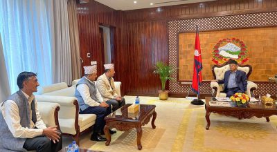 काठमाडौं ४ असार। प्रधानमन्त्री पुष्पकमल दाहाल प्रचण्ड बाढी पहिरो प्रभावित क्षेत्रको अवलोकन गर्ने सिलसिलामा संखुवासभाको तुम्लिङटार पुगेका छन् । प्रधानमन्त्री प्रचण्डले आजै ताप्लेजुङ र पाँचथरको पनि अवलोकन गरी काठमाडौं फर्किने कार्यक्रम छ । प्रधानमन्त्री प्रचण्डले जिल्लाका जनप्रतिनिधिहरुसहित नेपाली सेनाको हेलिकोप्टरमार्फत् बाढीपहिरो प्रभावित क्षेत्रको अवलोकनमा गएका ...