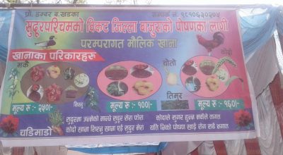 ढोरपाटन, ९ फागुन । करिब एक दशक अगाडिसम्म भातखानेडाँडा विकट गाउँ थियो । अहिले बजार बनेको छ । अग्लो डाँडैभरि ठूला–ठूला घर भवन बनेका छन् भने वरपर भिराला जमिन छन् । यी जमिनमा अहिले गहुँ, मकै, फापर र कोदो फल्छन् । यहीँ उत्पादन भएका खाद्यबालीबाट ...
