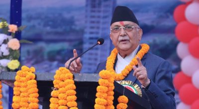 काठमाडौं २३ मंसिर । प्रधानमन्त्री केपी शर्मा ओलीले चीन भ्रमणबाट देशका लागि उपलब्धि भएको र केही समयपछि भारत जाने बताएका छन्। आफ्नो गृहजिल्ला झापाको दमकमा निर्मित व्यापारिक कम्प्लेक्सलाई उद्घाटन गर्दै प्रधानमन्त्री ओलीले भारत भ्रमणबारे जानकारी दिएका हुन्। उनले चाँडै नै भारत भ्रमणमा जान लागेको बताए ...