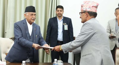काठमाडौं ४ मंसिर । प्रधानमन्त्री केपी शर्मा ओलीसँग नेपालका लागि अष्ट्रेलियाका राजदूत लिन जोन्स्टनले शिष्टाचार भेटवार्ता गरेकी छन् । प्रधानमन्त्री तथा मन्त्रिपरिषद्को कार्यालय सिंहदरबारमा राजदूत जोन्स्टनले प्रधानमन्त्री ओलीसँग भेटवार्ता गरेकी हुन् । त्यस अवसरमा प्रधानमन्त्री र राजदूतबीच नेपाल–अष्ट्रेलिया सम्बन्धका साथै आपसी हित र चासोका साझा ...