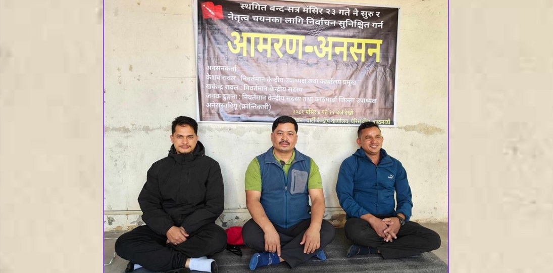 काठमाडौं ४ मंसिर । नेकपा माओवादी केन्द्रको विद्यार्थी संगठन अखिल क्रान्तिकारीको नयाँ नेतृत्व चयन गर्न माग गर्दै चारजना नेताले आजदेखि आमरण अनसन सुरु गरेका छन्। माओवादी केन्द्रको केन्द्रीय कार्यालय पेरिसडाँडामा मंगलबार बिहान ११ बजेदेखि विद्यार्थी नेताहरु केशव रावल, खकेन्द्र रावल र जनक ढुंगानाले आमरण अनसन ...