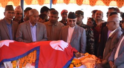 काठमाडौं ३ मंसिर । नेपाली कांग्रेसले पूर्वसभामुख एवम् पार्टीका नेता दमननाथ ढुङ्गानाको निधनको शोकमा मङ्सिर ४ गते पार्टी केन्द्रीय कार्यालय बन्द गर्ने निर्णय गरेको छ । सोमबार बिहान बसेको पार्टी केन्द्रीय कार्य समितिको आकस्मिक बैठकले स्वर्गीय ढुङ्गानाको प्रति शोक प्रस्ताव पारित गर्दै मङ्सिर ३ र ...