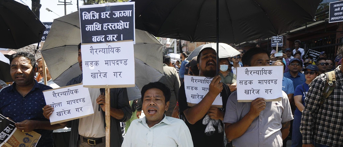 काठमाडौं ३ असोज । काठमाडौँका खोला किनारबाट थप २० मिटरसम्म संरचना बनाउन नपाइने फैसलाको विरोधमा बिहीबार काठमाडौँमा प्रदर्शन भएको छ। काठमाडौँका खोला किनारबाट थप २० मिटरसम्म संरचना बनाउन नपाइने सर्वोच्च अदालतको फैसलाले नीजि सम्पत्तिमाथि हस्तक्षेप गरेको भन्दै उनीहरूले विरोध गरेका हुन्। गैर न्यायिक सडक तथा ...