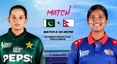 काठमाडौं ३ पुष । १९ वर्षमुनिको तीन खेलको एकदिवसीय क्रिकेट शृङ्खलामा नेपाल र हङकङले आज दोस्रो खेल खेल्दैछन् । मूलपानी क्रिकेट मैदानमा खेल बिहान पौने ९ बजे शुरू हुने छ । यसअघिको पहिलो खेलमा नेपालले हङकङलाई ३ विकेटले हराएको थियो । आजको खेल जितेमा नेपालले ...