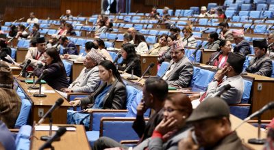 काठमाडौं १२ फागुन । राष्ट्रिय सभाको बैठक एक साताका लागि स्थगित भएको छ । राष्ट्रिय सभाको बैठक आइतबार बसेको थियो । त्यसपछि अर्को बैठक फागुन १८ गतेका लागि राखिएको छ । राष्ट्रिय सभाको संसदीय क्यालेन्डरमा सोमबार, मंगलबार र बुधबार बैठक बस्ने उल्लेख छ । यी ...