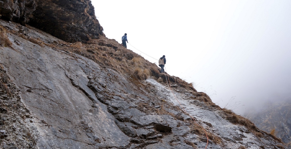 काठमाडौं ४ फागुन । म्याग्दीको रघुगङ्गा गाउँपालिका–७ मा रहेको धौलागिरि आधार शिविर पुग्न डोरीमा झुण्डीएर जोखिमपूर्ण यात्रा गर्नुपर्ने बाध्यता छ। कोखेभिर र धौलागिरि भ्यु प्वाइन्ट हिलमा जोखिम मोलेर अक्करे भिर पार गर्न डोरी र खरको गाँजको साहरा लिनुपर्छ। कोखेभिरमा ५० मिटर र धौलागिरि भ्यु प्वाइन्टमा ...