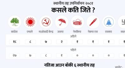 काठमाडौं १७ मंसिर । काठमाडौँको कीर्तिपुर नगरपालिकाको मेयरमा नेपाली कांग्रेसले अग्रता कायमै राखेको छ। निर्वाचन आयोगले सार्वजनिक गरेको पछिल्लो मत परिणामअनुसार कीर्तिपुरको मेयरमा कांग्रेसका कृष्णमान डंगोलले एक हजार ८९२ मतसहित अग्रता लिइरहेका छन्। कीर्तिपुरमा एमालेका डा।सुरेन्द्र मानन्धरले १ हजार ३७८ र माओवादी केन्द्रका प्रा।डा।शिवशरण महर्जनले ...