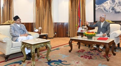 काठमाडौ ९ साउन । मन्त्रीसहित सत्तारुढ दल नेपाली कांग्रेसको पदाधिकारी बैठक बुढानीलकण्ठमा जारी छ। कांग्रेसका पूर्वपदाधिकारीसमेत सहभागी बैठक सभापति शेरबहादुर देउवाको निवासमा चलिरहेको हो। बैठकमा शेखर कोइरालादेखि बालकृष्ण खाणसम्म सहभागी छन्। जारी पदाधिकारी बैठकमा कांग्रेसबाट सरकारमा रहेका गृहमन्त्री रमेश लेखक, कृषिमन्त्री रामनाथ अधिकारी, ऊर्जामन्त्री दीपक ...